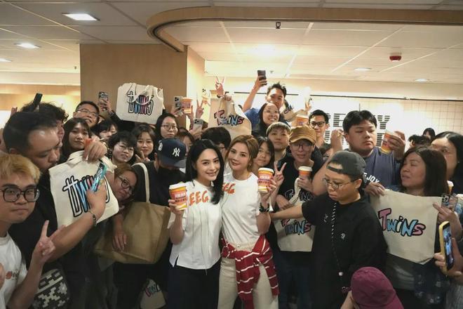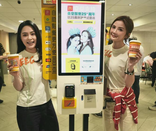 為慶祝「英皇娛樂25+ HAPPY BIRTHDAY慶典」,再加上是Twins出道25周年,3月23日Twins快閃麥當勞任「奶茶大使」,落區派奶茶派禮。(官方提供圖片)