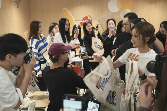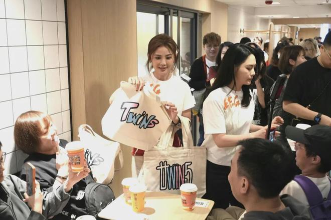 除了派奶茶,Twins更十分有心思,特別準備了Twins親自設計,印有「TWINS」Graffiti圖案的tote bag及小卡送給fans。二人默契十足,一個負責派奶茶,另一個派tote bag,實行要粉絲又有得飲又有得拎,滿載而歸。最後全場更一齊大合照,場面溫馨又熱鬧。