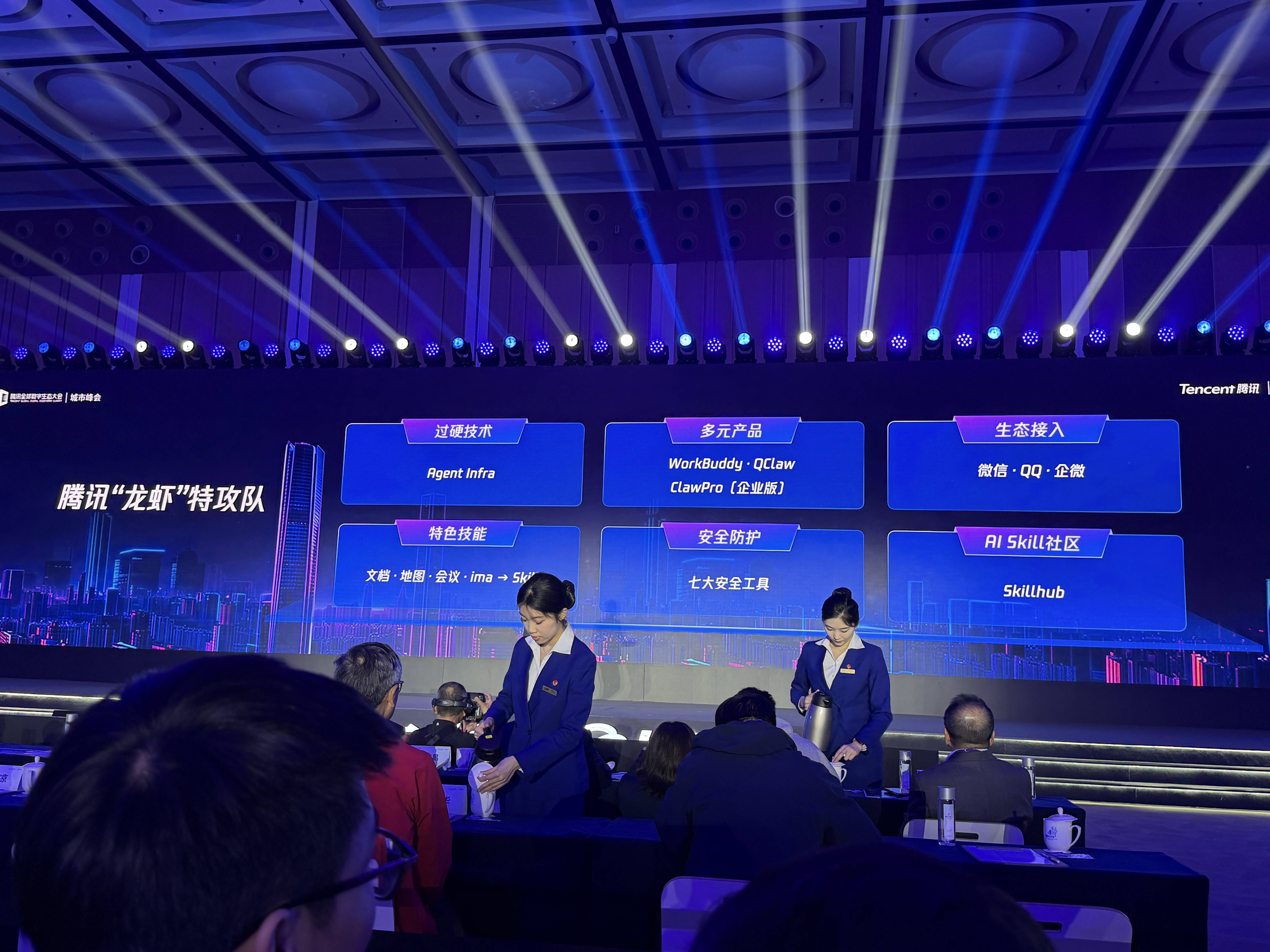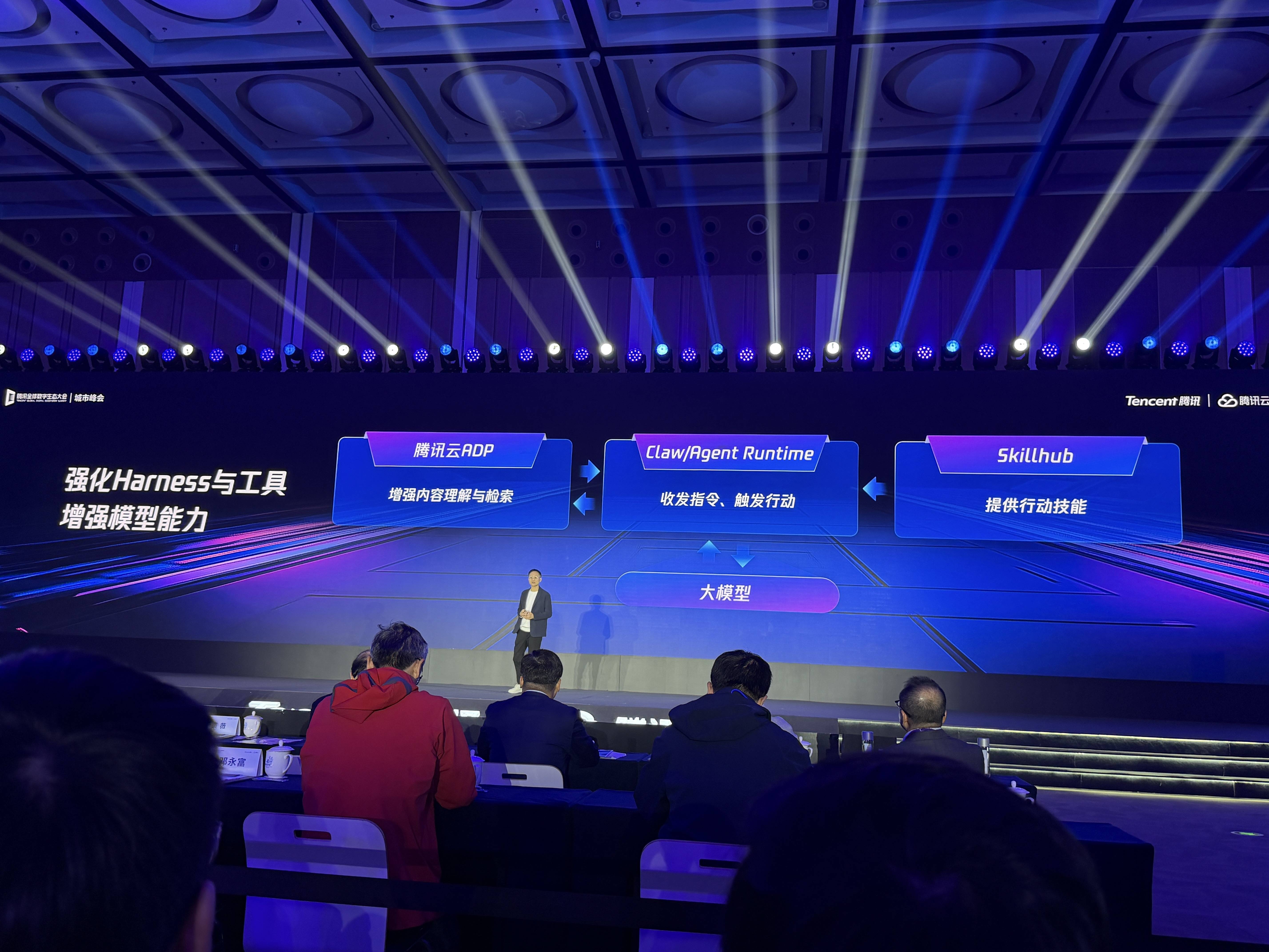 此次全景图的公开是腾讯云在智能体时代的关键落子,或标志着企业级智能体规模化、工程化、安全化的新时代。一、汤道生首次公开谈“龙虾”,详谈大模型时代腾讯4大关键打法腾讯集团高级执行副总裁、云与智慧产业事业群CEO汤道生提到,3月初,腾讯Lighthouse团队组织OpenClaw线下装机活动,吸引近千名用户参与。随后腾讯WorkBuddy、QClaw等面向C端用户的本地化Agent产品陆续上线,同时推出以安全为核心的“企业版龙虾”ClawPro。