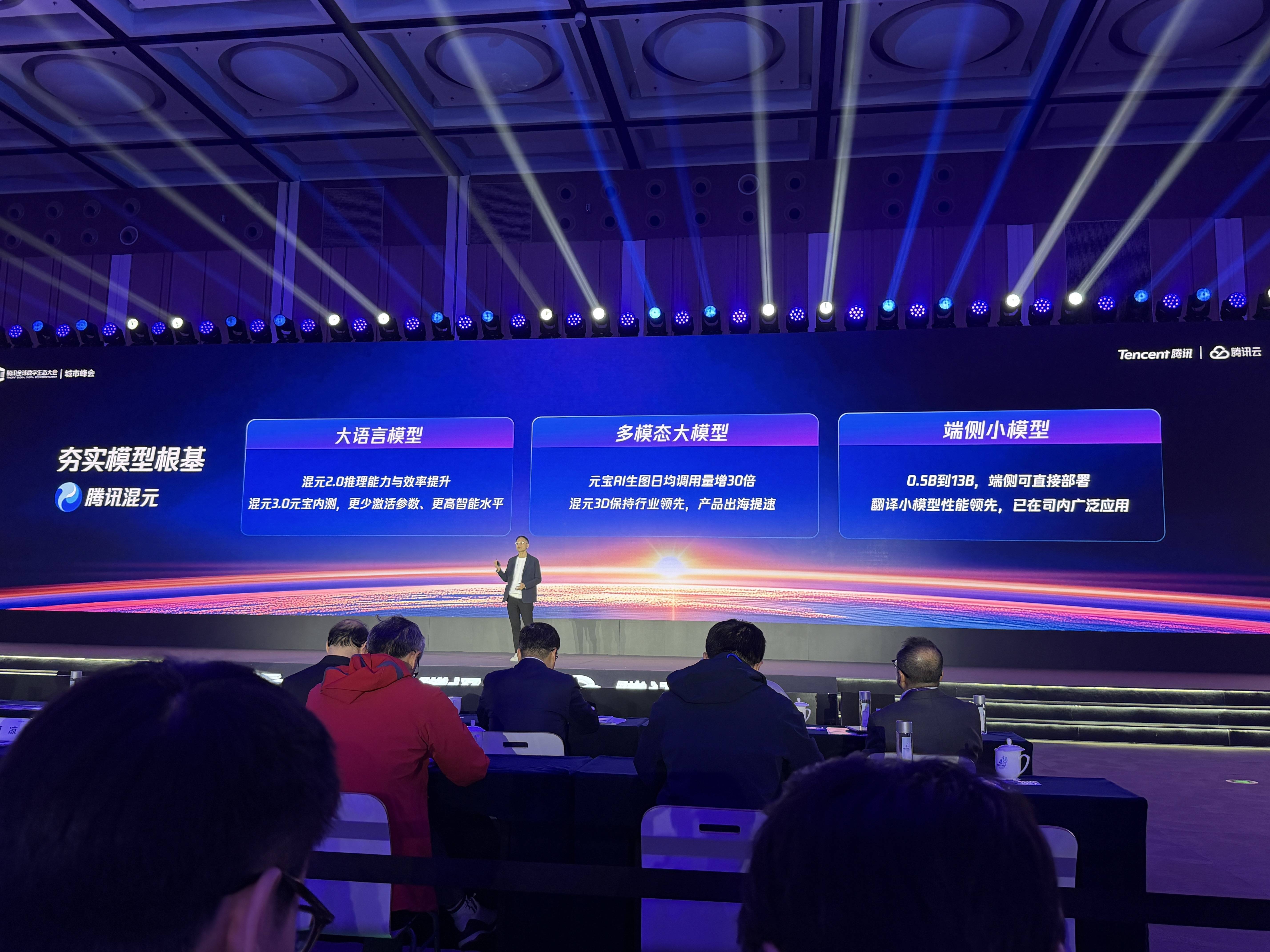 首先是模型根基,在大语言模型方面,他们聚焦模型性能与效率的双突破,过去一年,腾讯自研大模型发布了30多个版本。