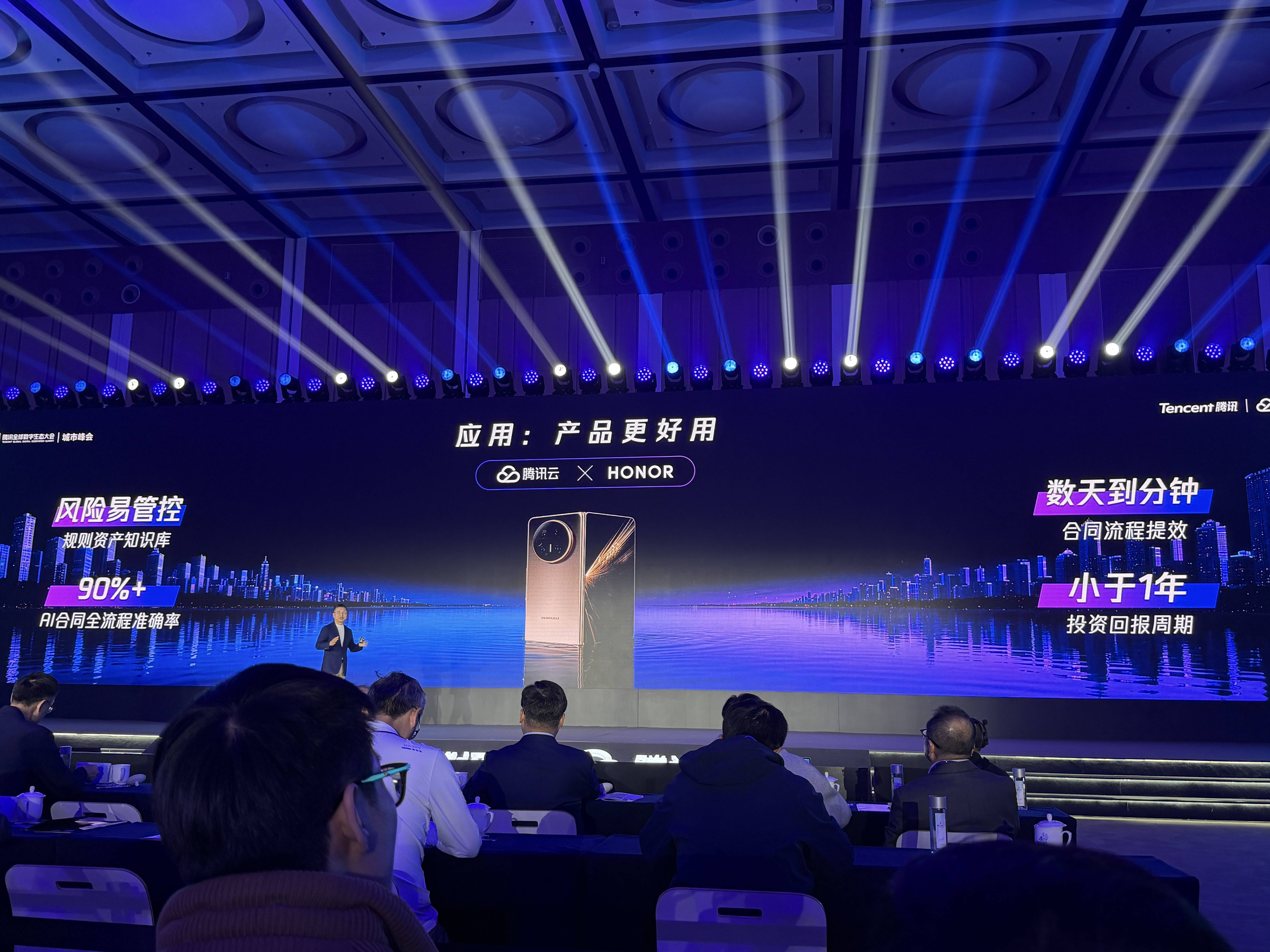 应用层面,腾讯和荣耀基于腾讯OCR、知识引擎、电子签等产品打造了合同专属AI,AI合同全流程准确率达到90%。